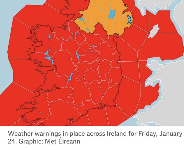 Dear coaches, parents and athletes, on behalf of the club board I write to draw your attention to the red weather warning for Dublin which runs from early morning to midday tomorrow (Friday) morning. For those using facilities tonight (Thursday), we would urge coaches and members to avoid leaving any equipment in places which might cause loss of such equipment in high winds. While the worst of the adverse weather should not affect use of the club facilities tomorrow (Friday), we will need to inspect the impact on the campus, including trails and the house, tomorrow (Friday) when it is safe to undertake same. Therefore, for reasons of personal safety and club liability, no members are to access the club facilities on Friday until an inspection has been undertaken by designated club officials and approval is given for members to access the site. We appreciate that the biggest gathering of athletes in the near future will be on Saturday mornings ordinarily and will try to give as much notice and clarity as possible. Flouting of guidance from the club is not acceptable and may be subject to sanction. Stay safe and let's be careful out there.