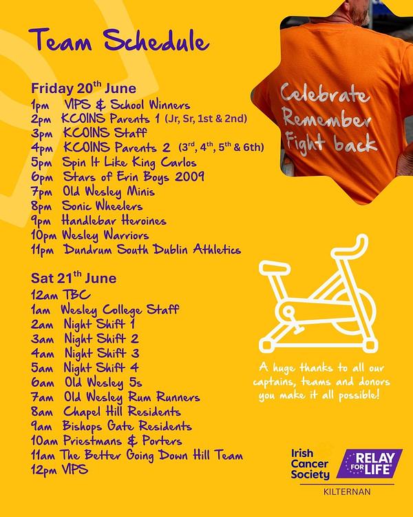 A team from DSD will be taking part in the 24-hour Relay for Life Cycle at Kilternan Parish Church, cycling this evening from 11:00 PM to midnight in support of the Irish Cancer Society.