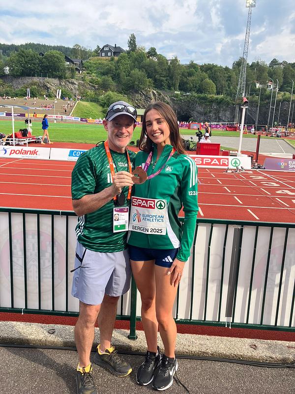 As they hit the home straight the challengers were gathering behind. A favoured GB athlete moved to Eimear’s shoulder to mount a challenge, a subtle drop of the head, and with gritted teeth, Eimear produced her trade mark kick and powered away to claim a superb 3rd place and Irelands 4th medal of the championship. Running 4.09 the second fastest time of her career.